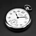 時とともに価値が増し、世代から世代へと引き継がれる本物志向の本格的手巻機械式の提げ時計です。こだわる男のこだわる逸品に相応しい、丁寧な彫刻模様をムーブメントの随所に施した、工芸品を思わせる風格です。全てのネジはブルーIP(イオンプレーティング)を施し、エンジン部分の角穴車はピンクゴールドに輝いています。17石の赤のルビーとのマッチングで、高級感を漂わせています。機械時計の1秒間に6回のカチカチ音と、テンプの軽やかな回転を耳と目でお楽しみ頂けます。